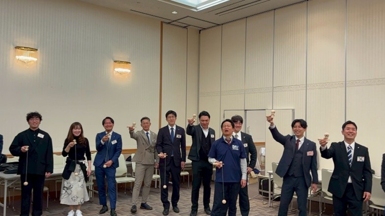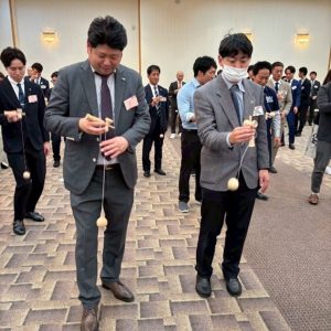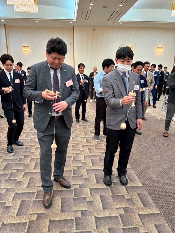 12月定期総会後に「福井YEGメンバー間のにぎわいづくり」をキーワードに、けん玉を使って全員いっせいに大皿ジャンプを成功させるけん玉チャレンジ!に挑戦しました。